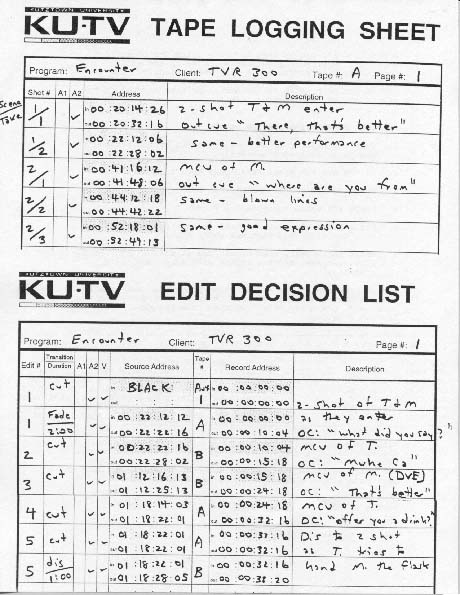 Sample Tape Log & Paper EDL